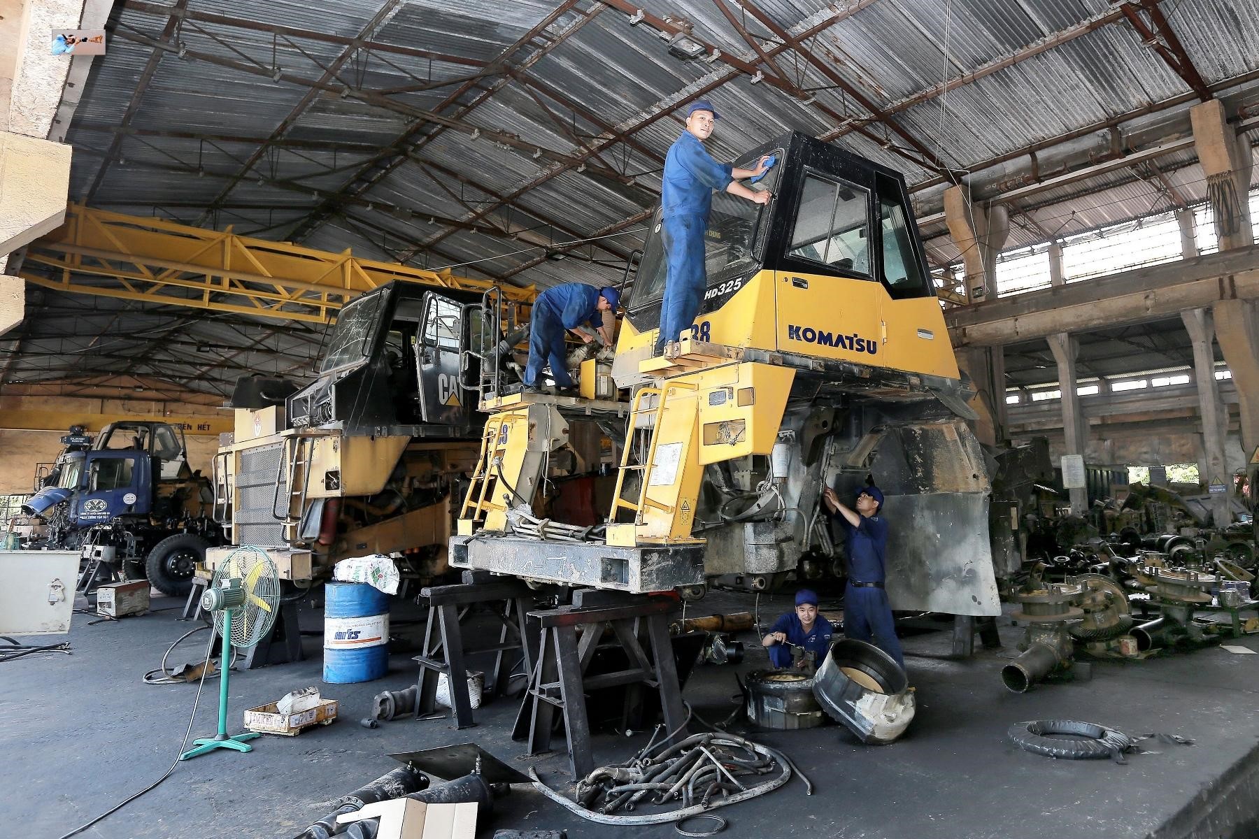- Sửa chữa trung đại tu các loại xe phục vụ khai thác mỏ vận tải